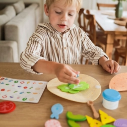Combinația dintre piesele solide din lemn și tortillele moi din fetru susține motricitatea fină, percepția texturilor și jocul în siguranță chiar și pentru cei mai mici.