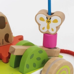 Jucăria este destinată copiilor de la 18 luni. Susține primii pași datorită șnurului de tras, îi învață să recunoască culorile și formele și întărește gândirea logică. Datorită lemnului de calitate și vopselelor sigure, netoxice, este o alegere ideală pentru joaca zilnică, acasă sau în călătorii.