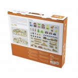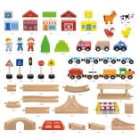 Setul complet include șine, pod, bariere, 2 trenulețe, vehicule, personaje și animăluțe – totul pentru a crea un oraș și o natură pline de viață.