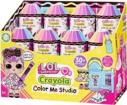 Descoperă lumea creativă cu L.O.L. Surprise! loves CRAYOLA Color Me Studio – un set distractiv în care găsești o păpușă, 20 de ținute din hârtie, 4 creioane cerate CRAYOLA și 30+ surprize. Capsula în formă de creion servește drept studio, vitrină și ambalaj portabil practic.