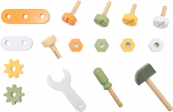 Copiii pot înșuruba, bate cu ciocanul și asambla mecanisme simple cu roți dințate – antrenând în mod natural îndemânarea degetelor, răbdarea și imaginația spațială. Setul este ideal atât pentru joaca independentă, cât și pentru activități creative împreună cu părinții.