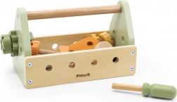 Această ladă din lemn stilată pentru unelte, în culorile delicate ale colecției POLARB, oferă copiilor o modalitate sigură și distractivă de a descoperi lumea uneltelor. Piesele sunt plăcute la atingere, fără muchii ascuțite și lăcuite cu vopsele sigure potrivite pentru copii.