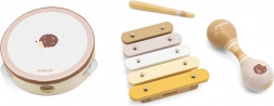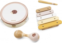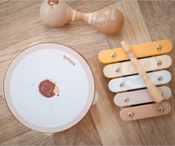 Acest set elegant pentru copii combină execuția sigură din lemn cu designul armonios POLARB, cu motiv de arici. Copiii pot descoperi ritmul la tamburină, pot cânta melodii simple la xilofon și pot exersa coordonarea cu ajutorul maracasului. Ideal pentru primele întâlniri cu muzica acasă și la grădiniță.