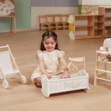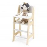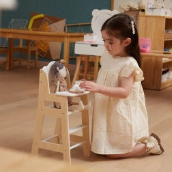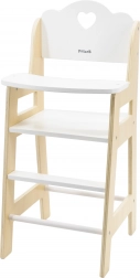 Acest scăunel stilat, realizat dintr-o combinație de lemn natural și alb, este un accesoriu grozav pentru toți micii îngrijitori. Copiii pot „hrăni” păpușile confortabil, pot avea grijă de ele și își pot dezvolta imaginația și abilitățile sociale. Scăunelul este destinat păpușilor de până la 38 cm și este potrivit de la 3 ani.