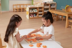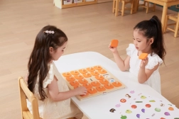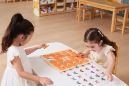 Cardurile colorate cu motive de forme, fructe sau animale permit ajustarea dificultății și îi învață pe copii să recunoască și să sorteze.