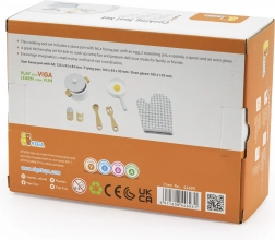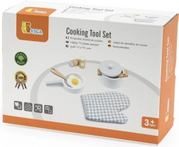 Setul de bucătărie din lemn, elegant, de la VIGA este ideal pentru joaca de-a bucătăria și dezvoltarea imaginației, creativității și motricității fine. Conține oală cu capac, tigaie cu ou ochi, solniță și piperniță, spatulă, lingură și mănușă de bucătărie. Realizat din lemn de calitate și vopsit cu vopsele netoxice – distracție sigură pentru copii de la 3 ani.