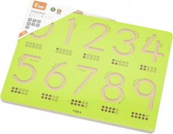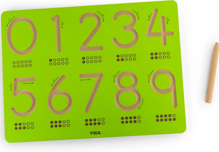 Această tablă din lemn de înaltă calitate, cu cifrele 0–9 frezate, este un instrument ideal pentru primii pași către scriere. Cu ajutorul stiloului din lemn, copilul urmează șanțurile curbate cu săgeți de direcție, consolidând forma corectă a cifrelor, ritmul și urmele de memorie pentru o trecere mai lină la scrisul cu creionul.