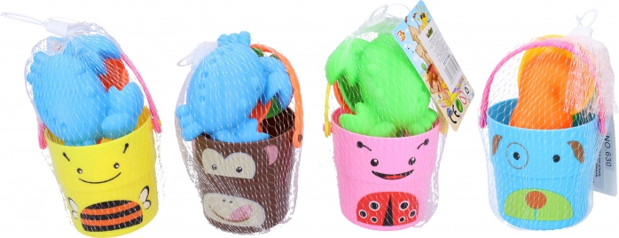 - Setul conține o găleată cu motive vesele de animale, perfectă pentru transportul nisipului sau al apei.