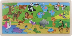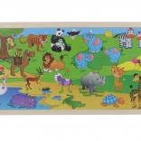 Descoperiți puzzle-ul din lemn cu temă safari cu 96 de piese, care dezvoltă motricitatea fină, gândirea logică și răbdarea copiilor. Formatul mare, de 44,5 × 22,5 cm, este ideal pentru copiii de la 3 ani.
