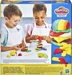 Cu setul Play-Doh Bucătărie Burger și Cartofi Prăjiți, micii artiști culinari se pot scufunda în lumea jocului creativ. Setul include: