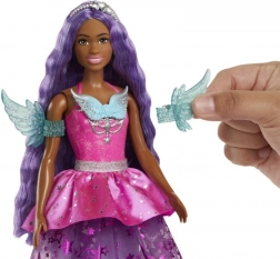 Păpușa Barbie Brooklyn aduce în camera copiilor o doză de magie, exact ca în filmul Barbie: O atingere de magie. Strălucește într-o rochie de basm cu fustă din tulle presărată cu stele și detalii de aripi pe corsaj. Părul lung mov, cu lungimea de 17 cm, te îmbie la coafare și decorare, iar accesoriile, animăluțele și aripile deschid ușa unei fantezii fără sfârșit.