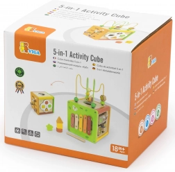 Descoperă coloratul cub activ din lemn 5-în-1 de la Viga, care oferă copiilor de la 18 luni ore de joacă inteligentă. Fiecare latură propune o activitate diferită – xilofon, sortator de forme, labirint, cubi rotativi și trasee motrice cu mărgele. Lemnul masiv de calitate, execuția sigură și culorile vii susțin dezvoltarea motricității fine, a gândirii logice și a creativității.
