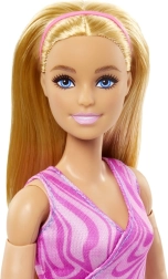 Păpușa are păr lung blond și poartă un top sport roz și colanți albaștri cu model tie-dye, care se potrivesc perfect stilului de joc dinamic. Este ideală pentru colecționari și pentru copiii de la 3 ani care doresc să exploreze lumea, să-și dezvolte flexibilitatea și să creeze propriile povești.