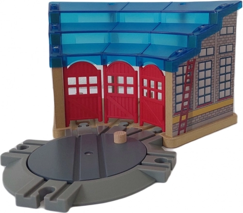 Depou mare care oferă adăpost și facilități pentru trei locomotive sau vagoane. Căldura și liniștea din interior le vor da putere pentru călătorii lungi de-a lungul căilor ferate. Acoperișul pe două niveluri vă permite acces perfect la toate locomotivele parcate, care au nevoie de reparații sau doar de curățare și pregătire pentru următoarea cursă. Acest depou are propria placă turnantă, care oferă un mare confort la intrarea și rotirea vagoanelor și locomotivelor. Include depoul și placa turnantă. Dimensiunile depoului incl. placa turnantă: 34x34 cm, înălțime 18 cm, diametrul plăcii turnante 18 cm. Dimensiuni ambalaj: 31x21x20 cm. Căile ferate și accesoriile Maxim pot fi combinate cu toate celelalte căi ferate din lemn de pe piață. Pentru copii de la 3 ani.