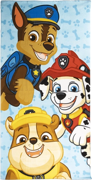 Prosop de plajă stilat cu motivul PATRULA CĂȚELUȘILOR îi va bucura pe copii atât la piscină, cât și la mare. Este ușor, cu uscare rapidă și plăcut la atingere. Dimensiune 140×70 cm, material 100% poliester.