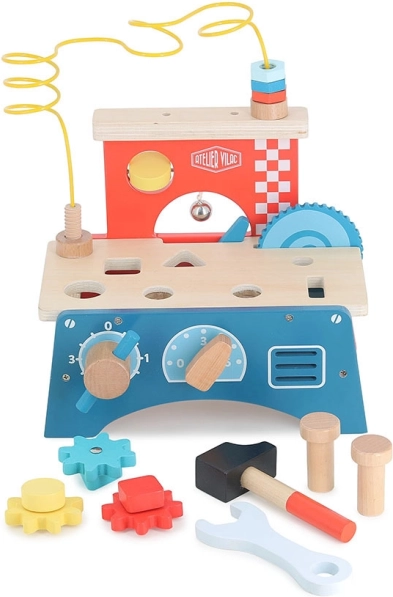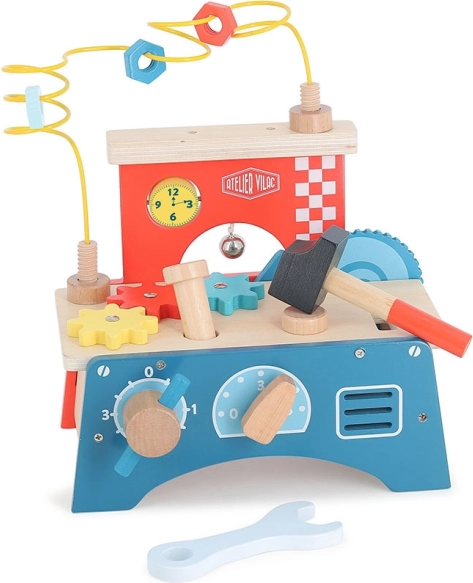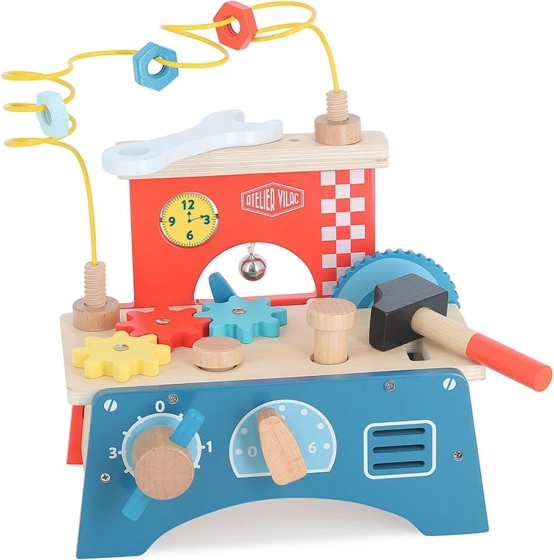 Masa multi-activități de la Vilac este concepută pentru a susține dezvoltarea copiilor în diferite arii. Include un ciocănel, clopoțel, roți dințate și multe alte elemente pentru stimularea simțurilor și a abilităților motorii. Jucăriile inspirate de metoda Montessori sprijină dezvoltarea naturală a copilului, pun accent pe independență și descoperire. Copiii învață să se joace împreună, ceea ce contribuie la dezvoltarea abilităților sociale.