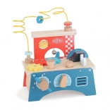 Elemente special concepute, precum ciocănelul și labirintul cu bile, contribuie la dezvoltarea coordonării și îndemânării fine.