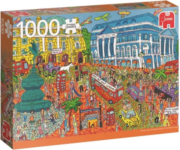 Puzzle JUMBO premium, cu motivul emblematicului Piccadilly Circus din Londra, oferă 1000 de piese pentru ore întregi de distracție. Se remarcă prin tăierea precisă, cartonul reciclat și textura de in a suprafeței, pentru un aspect elegant și potrivit pentru înrămare după asamblare.