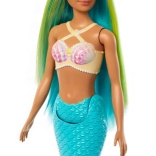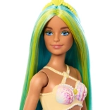 Păpușa Barbie sirenă cu un corset inspirat de scoici și păr colorat este grozavă pentru aventurile subacvatice.
