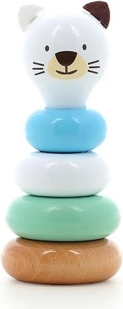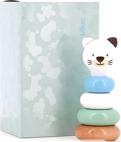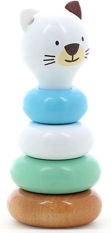 Un turn de stivuire din lemn, adorabil, în formă de pisicuță, îi va încânta pe cei mai mici de la 12 luni. Conține 5 piese și este realizat din lemn lăcuit de înaltă calitate. La asamblare, copiii își dezvoltă motricitatea fină, coordonarea mână-ochi și învață sortarea după mărime. Fabricat cu grijă în Franța.