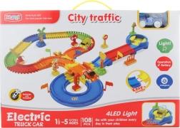 Acest traseu cu mașinuță este fabricat din plastic de înaltă calitate și este proiectat pentru copiii începând de la vârsta de 18 luni. După inserarea unei baterii AA (care nu este inclusă), mașinuța va lumina și va începe să se miște pe traseu. Setul conține în total 108 piese, ceea ce permite asamblarea de forme și trase diferite pe care copiii le pot explora. Datorită dimensiunilor sale, traseul este ușor de transportat și se poate depozita sau asambla rapid, după nevoie.