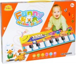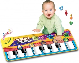 Acest covoraș tactil cu motiv de pian este un instrument perfect pentru primele întâlniri ale copiilor cu muzica. Printr-o simplă atingere a clapelor și a imaginilor cu animale sau steluțe se pornesc diverse efecte sonore, care îi motivează pe copii să se joace și să exploreze. Construcția ușoară și compactă permite utilizarea acasă și în călătorii.