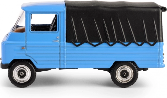 Cabină detaliată, laterale nervurate și prelată neagră care oferă modelului aspectul fidel al autoutilitarei istorice.