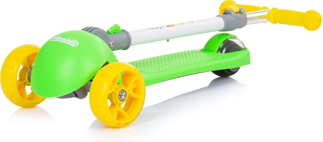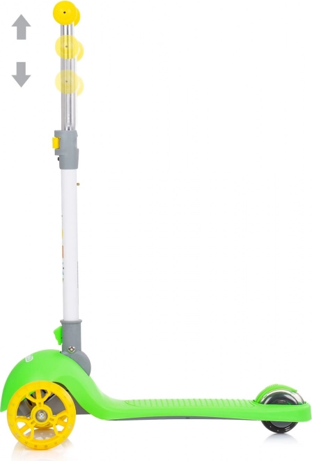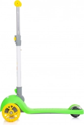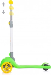 Oferiți-le copiilor o plimbare distractivă și sigură cu trotineta CHIPOLINO Funky în varianta verde‑galben. Cadrul ușor din aluminiu facilitează manevrarea, în timp ce platforma lată antiderapantă și mânerele din cauciuc asigură stabilitate în mers. LED-urile colorate din roțile din față și din spate se aprind la mișcare și sporesc vizibilitatea.
