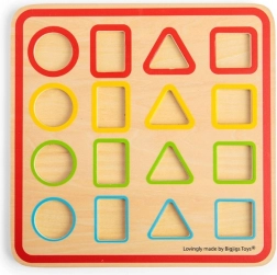 Setul include o placă de bază solidă și 16 piese din lemn de forme și culori diferite. Dimensiunea compactă a plăcii, 25 × 25 × 0,9 cm, este potrivită pentru masa copilului și pentru călătorii și se depozitează ușor.