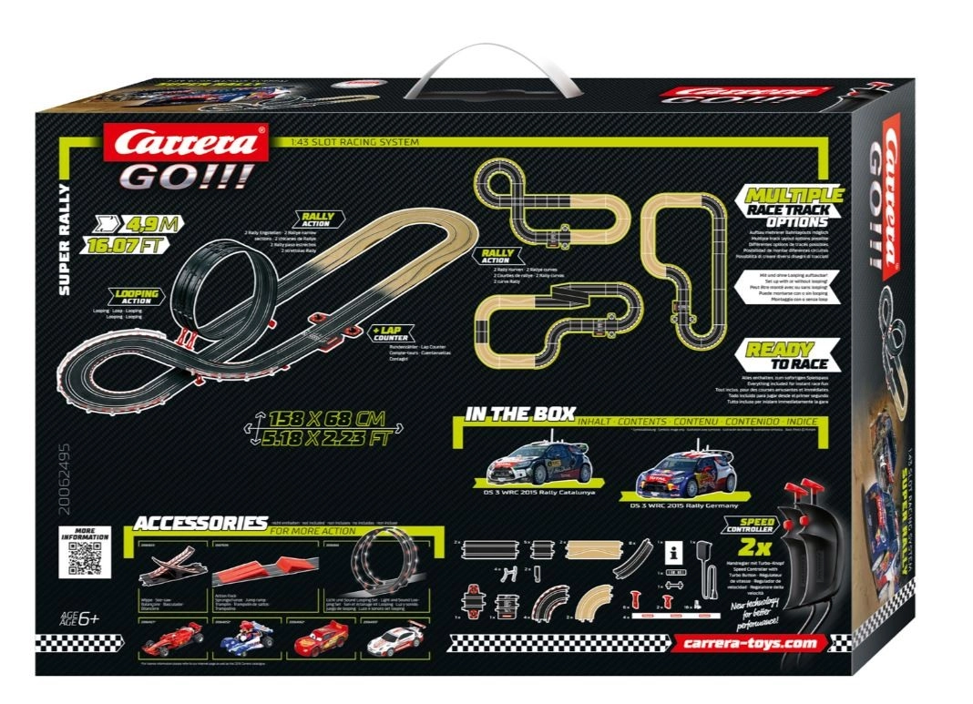 Intră în lumea curselor adevărate cu pista CARRERA GO!!! Super Rally. Combinația de linii drepte rapide, buclă solicitantă și viraje strânse garantează distracție intensă și spirit competitiv pentru copii și adulți. Alegerea ideală pentru toți cei care iubesc cursele dinamice și vor să-și depășească limitele.
