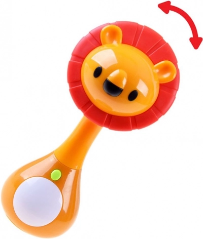 Zornăitoarea interactivă adorabilă în formă de leu îi încântă pe cei mici cu melodii vesele, efecte luminoase și mai multe moduri de joc. Datorită formei ergonomice, se ține ușor în mânuțele copiilor, iar părțile selectate din material cauciucat moale pot fi folosite ca jucărie de dentiție. Zornăitoarea oferă 3 moduri de joc, un burtică luminoasă care își schimbă culorile și sunete plăcute ce dezvoltă auzul și motricitatea copilului.