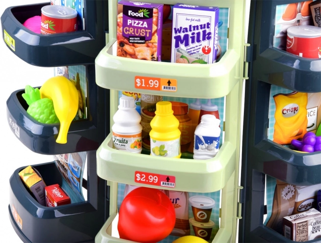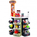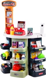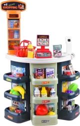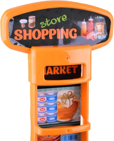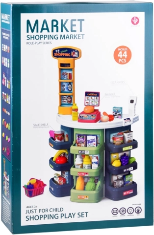 Magazinul pentru copii, cu tejghea, rafturi și casă de marcat, transformă camera într-o mică piață. Datorită scannerului, coșului și banilor falși, copiii pot încerca atât cumpărarea, cât și vânzarea ca într-un magazin adevărat. Accesoriile realiste – de la sticle și conserve la fructe și legume – fac jocul captivant.