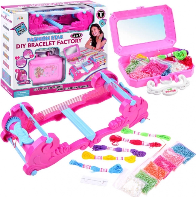 Acest set creativ pentru copii este ideal pentru primele încercări în lumea bijuteriilor DIY. Datorită războiului de țesut clar și ușor de folosit, copiii pot realiza cu ușurință brățări colorate cu mărgele strălucitoare, perfecte ca dar personal pentru mamă, soră sau prietenă. Căsuța practică din plastic, cu oglindă, ajută la organizarea tuturor accesoriilor și oferă spațiu pentru creațiile finalizate.