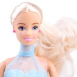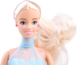 Păpușa elegantă ANLILY va încânta orice mică balerină. Are păr blond lung, genunchi și coate flexibile pentru poziționare și dans facil, poartă o rochie albastră sclipitoare și balerini roz. În pachet găsești și o fustiță tutu sclipitoare suplimentară pentru o schimbare rapidă de stil. Înălțimea păpușii este de aproximativ 30 cm.