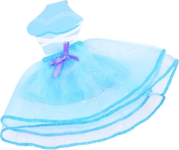 Pachetul include o fustiță tutu albastră extra sclipitoare, cu panglică mov, pentru o schimbare rapidă a ținutei.