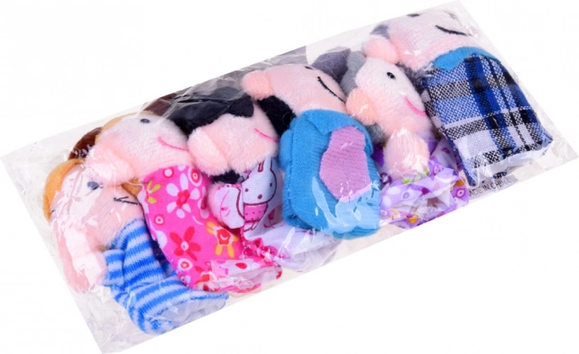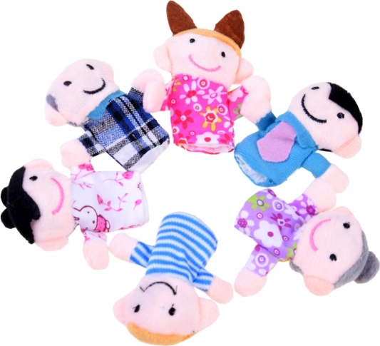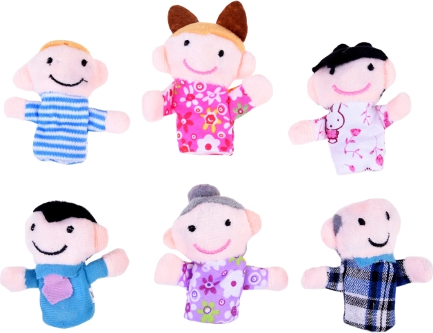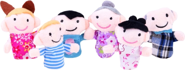 Setul conține șase păpuși degetare – bunicul, bunica, mama, tata, băiatul și fata.
