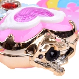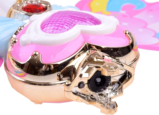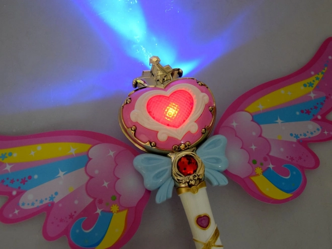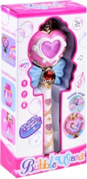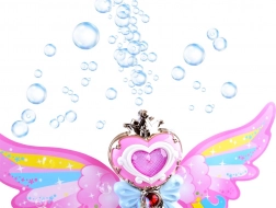 Această baghetă fermecătoare cu aripi curcubeu oferă posibilitatea de a lansa bule colorate din săpun, care încântă fiecare copil. La apăsarea butonului, muzica veselă începe să cânte și bagheta strălucește cu lumini strălucitoare.