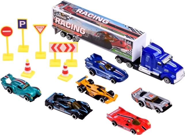 Setul include și un camion mare cu remorcă, care oferă distracție suplimentară și extinde posibilitățile de joc.