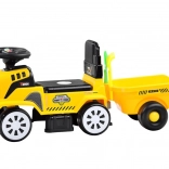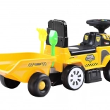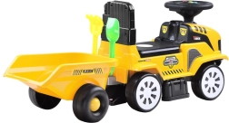 Motocicleta fără pedale pentru copii, în formă de tractor, cu remorcă detașabilă, îi va încânta pe micii șoferi atât acasă, cât și în grădină. Oferă melodii și efecte luminoase, roți din față pivotante, spațiu de depozitare încăpător sub șa și formă ergonomică cu spătar pentru o plimbare confortabilă și sigură. Setul include greblă și lopățică pentru joacă creativă.
