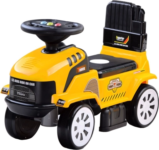 Tractorul fără pedale este realizat din plastic de calitate, ușor, în culori vii. Datorită dimensiunilor compacte, copiii se bucură de plimbare atât în apartament, cât și în grădină. Construcția stabilă, spătarul și protecția spate împotriva răsturnării cresc siguranța în timpul jocului.