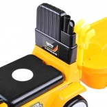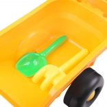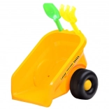 Remorca detașabilă cu suporturi pentru depozitarea greblei și a lopățicii incluse stimulează imaginația și jocul pe șantier sau în nisip.