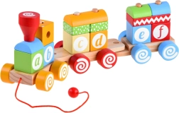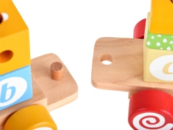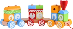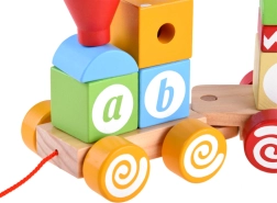 Părțile detașabile ale trenulețului permit copilului să învețe să recunoască forme, să le asambleze și să își construiască propriile vagoane. Pe fiecare bloc este o literă, ceea ce ajută la păstrarea vizualizării primelor litere în memorie.