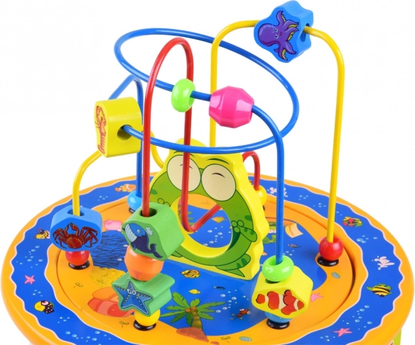 Acest cub educațional din lemn oferă o gamă largă de activități care vor ajuta copilul dumneavoastră să dobândească abilități și cunoștințe noi. Include multe funcții, cum ar fi un labirint cu mărgele, un abac colorat și decupaje de forme. Toate elementele sunt concepute pentru mâinile mici ale copilului, asigurând o joacă sigură și confortabilă.