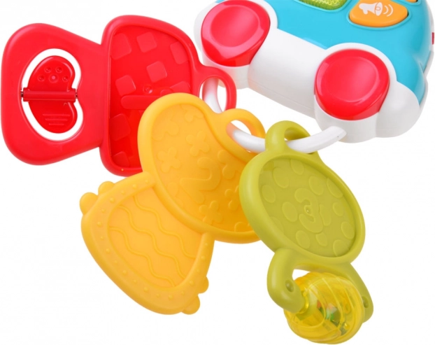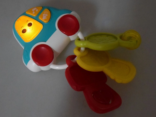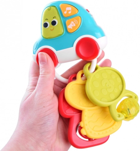 Căutați o jucărie care să distreze și, în același timp, să susțină dezvoltarea bebelușului? Cheițele interactive combină muzica, lumina și texturi variate pentru stimuli senzoriali bogați. Copilul se va bucura de 5 melodii vesele, sunete reale de mașină (deschidere, claxon, mers înapoi, motor în funcțiune, frânare) și efecte scurte amuzante, însoțite de o luminiță clipitoare. Construcția ușoară și forma ergonomică sunt adaptate mânuțelor mici.