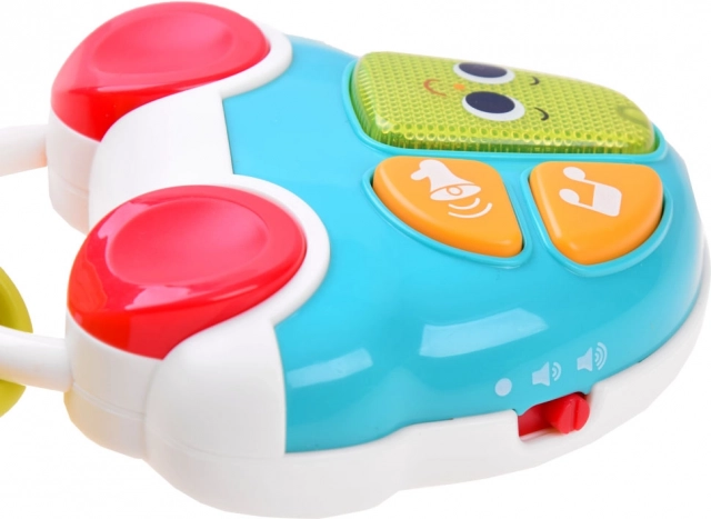 Prin apăsarea butoanelor porniți 5 melodii vesele, sunete realiste de mașină (deschidere, claxon, mers înapoi, motor, frânare) și efecte scurte amuzante. Luminița clipitoare stimulează percepția vizuală și invită la explorare.