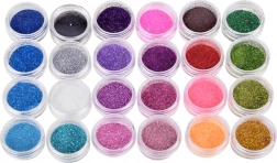 Sclipici colorat în borcănașe transparente care permite amestecarea nuanțelor și crearea de efecte unice, strălucitoare pe piele.