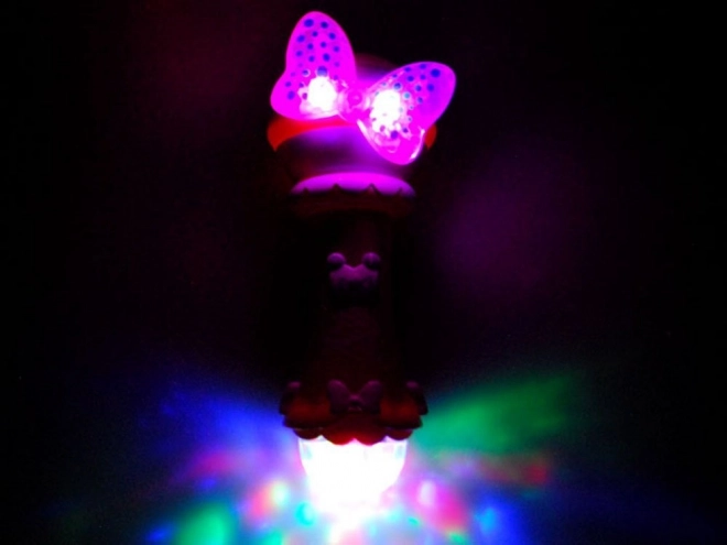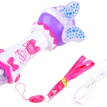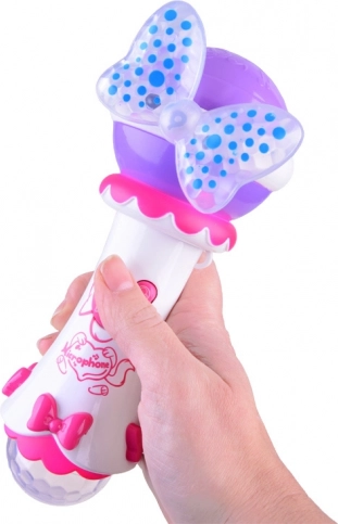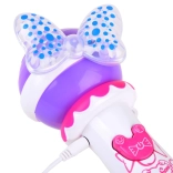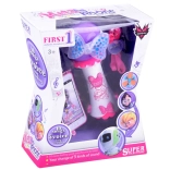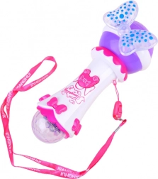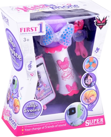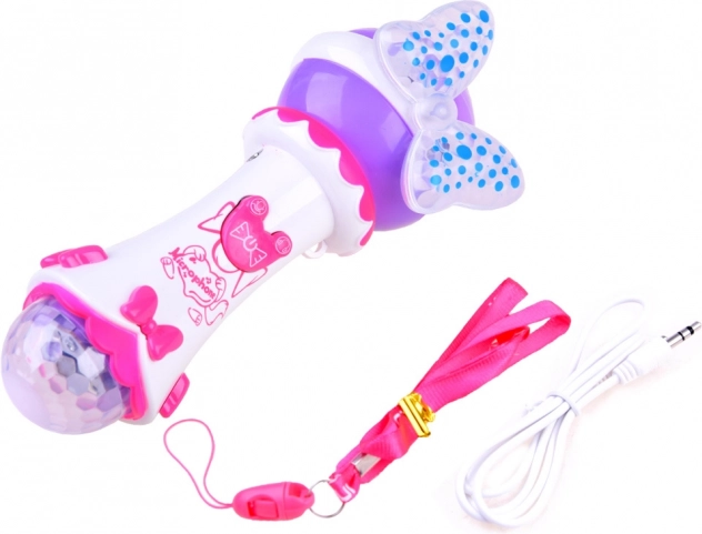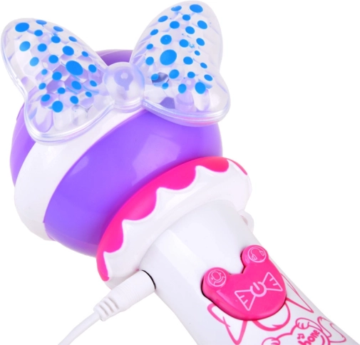 Acest microfon drăguț, cu fundiță și elemente luminoase, îi va încânta pe toți copiii care iubesc muzica și cântatul. Datorită funcției de înregistrare, micul cântăreț își poate salva interpretarea și o poate reda din nou. Prin conectarea unui MP3, poate cânta cu ușurință piesele preferate pe acompaniamentul original.