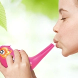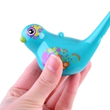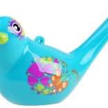 Acest fluier vesel în formă de pasăre funcționează atât ca fluier clasic, cât și ca jucărie muzicală cu apă. După turnarea apei prin orificiul din partea superioară, la suflat începe să ciripească fermecător – înălțimea și timbrul tonului sunt influențate de cantitatea de apă și de puterea suflului. Fără apă, emite un sunet clar și puternic.