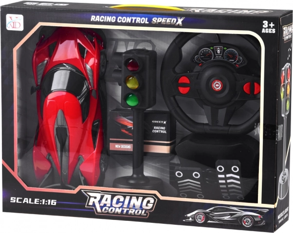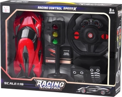 Trăiți curse realiste cu mașina sport RC cu set volan + pedale și semafor. Datorită controlului intuitiv aveți control total asupra mersului înainte/înapoi și a virajelor, mașina are efecte luminoase, anvelope din cauciuc pentru aderență mai bună și este alimentată de un acumulator reîncărcabil.