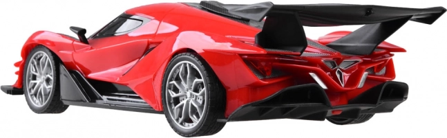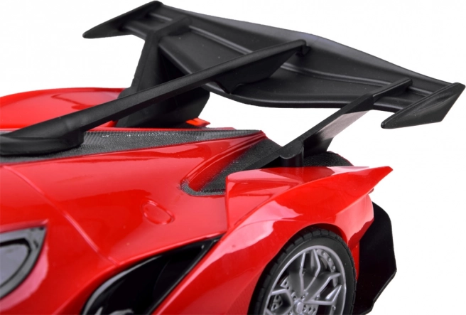 Acest model futurist cu șasiu jos și spoiler spate aduce ore de distracție copiilor și adulților. Telecomanda în formă de volan stă excelent în mână și, împreună cu pedalele, simulează fidel condusul. Farurile frontale se aprind la mersul înainte și oferă un efect atractiv în timpul condusului.